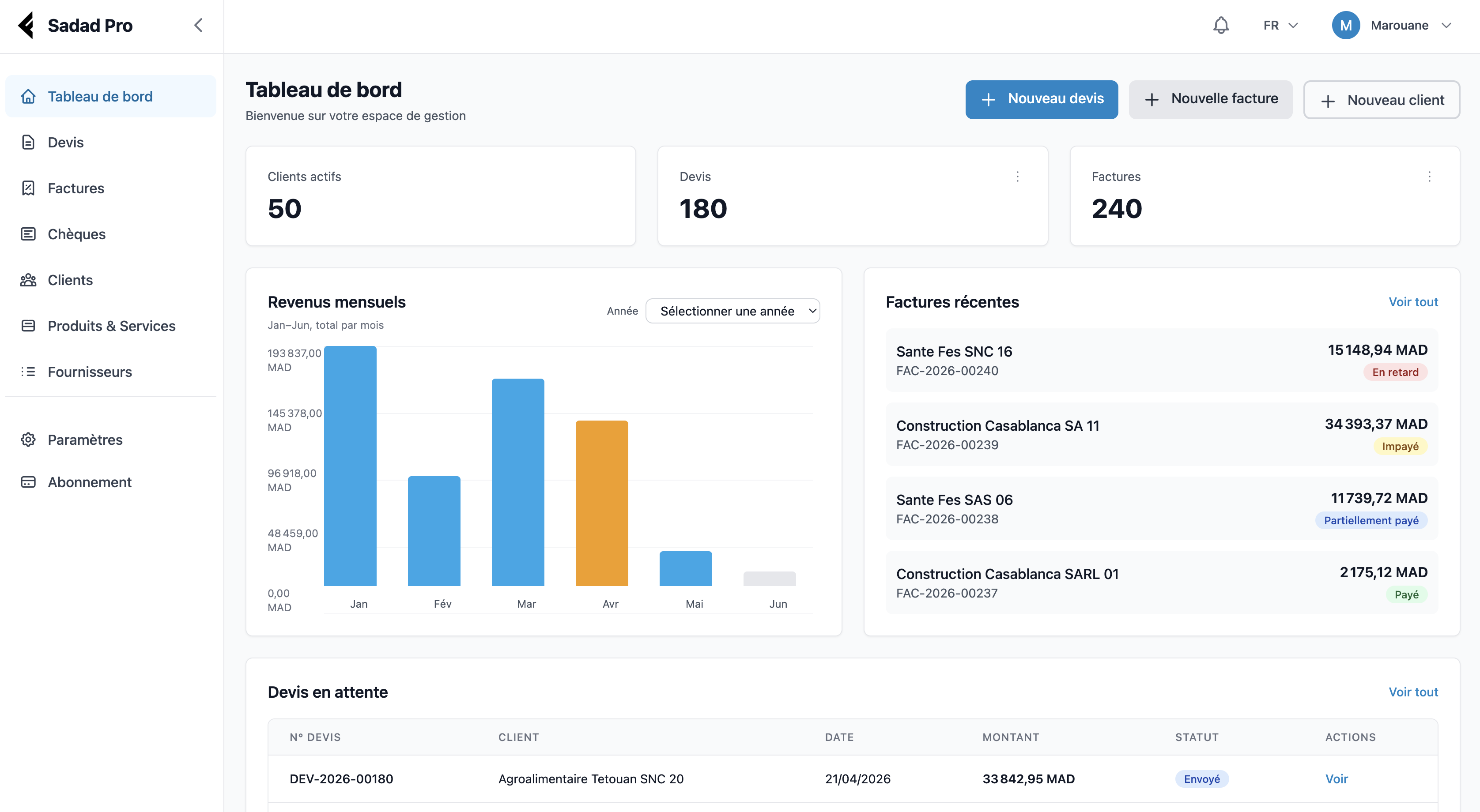 Les outils compliqués font perdre du temps. Sadad Pro centralise l’essentiel pour aller plus vite et encaisser sereinement.